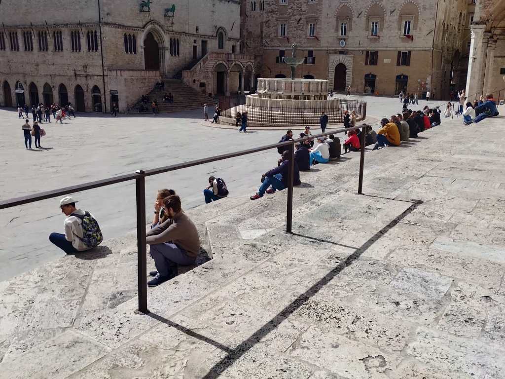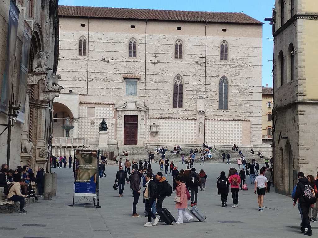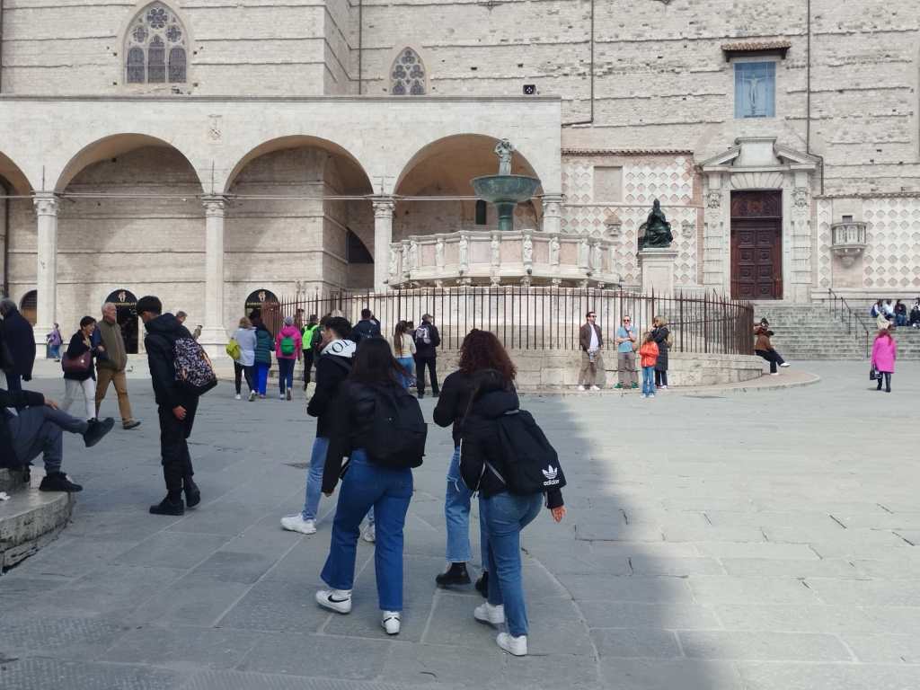 PERUGIA – Pienone a Perugia domenica mattina: turisti, comitive, gite di studenti. E il centro prende vita.