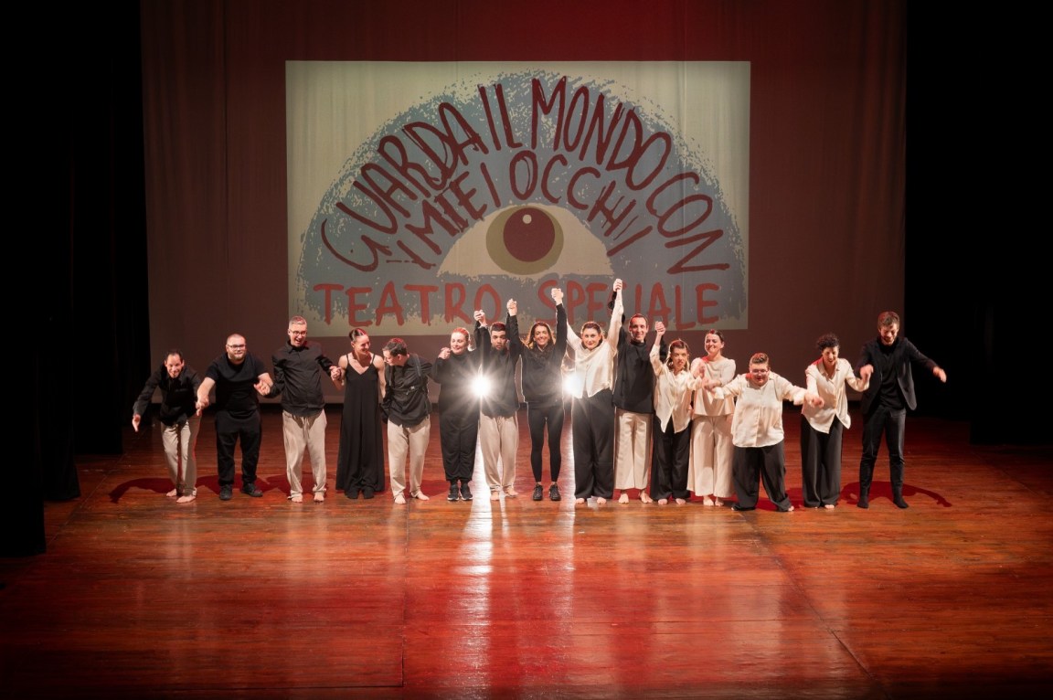 La compagnia di ragazzi speciali ha incantato la città. Un teatro gremito in ogni ordine di posti, come non si era mai visto, ha salutato con un lunghissimo applauso e richiesta di bis il debutto dello spettacolo, “Guarda il mondo con i miei occhi”, su testo e regia di Valentina Martinelli. Una bellissima pagina di teatro, solidarietà e condivisione. Aurora, Gino Maria, Agnese, Giacomo, Elisa, Livia e Alessio, persone con disabilità, sono stati gli interpreti, attori “speciali” che per la prima volta, sono saliti sul palco di un teatro per presentare un lavoro di grande intensità emotiva e suggestione. Un percorso che ha previsto degli incontri settimanali da settembre 2023 a febbraio 2024 che hanno valorizzato l’emotività e il lato artistico dei ragazzi speciali, portandoli a far emergere la loro parte creativa, ricca di insegnamenti per chi li osserva. Lo spettacolo, primo di questo genere, è stato reso possibile dall’Associazione Cofad (Comitato familiari disabili), dal Consorzio Castello Danza, dal comune di Città di Castello con la partecipazione degli attori di “Holo teatro 2 A 2”, i danzatori e gli insegnanti del consorzio