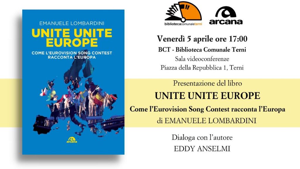 TERNI-«L’Eurovision Song Contest nasce nel 1956 su ispirazione del Festival di Sanremo e sin dalla prima edizione ha raccontato l’Europa che cambia. Del resto, l’idea che stava alla base della sua nascita era proprio quella di rimettere insieme, attraverso la musica, l’intrattenimento e la televisione, i cocci di un continente dilaniato dalla guerra. Nel corso degli anni, l’Eurovision ha raccontato l’uso strumentale della musica da parte delle dittature, la fine di queste ultime e la transizione verso la democrazia, ma anche i movimenti sociali e politici, fino ai tanti conflitti sparsi per l’Europa. Un ruolo sociale e politico importante, certificato dal recente riconoscimento Changemaker Award come catalizzatore del cambiamento sociale in un mondo frammentato, unendo i paesi d’Europa e oltre, nella loro ricerca di un sogno musicale. L’Eurovision incarna lo spirito dei tempi e la società che cambia e si evolve, nel segno dei diritti, dell’uguaglianza e dell’inclusione. Anche per questo recentemente alcune tv nazionali hanno scelto di escludersi, non condividendone più i valori. Nel mezzo, ci sono i grandi Paesi occidentali, quelli che i valori dell’Eurovision li interiorizzano da sempre e che invece devono pensare soprattutto alla musica, per non lasciarsi sopraffare. Il titolo del libro, “Unite Unite Europe”, Arcana edizioni cita il coro di Insieme 1992 con cui Toto Cutugno vinse l’Eurovision 1990. Interverrà Eddy Anselmi». Il libro è a cura di Emanuele Lombardini, giornalista professionista dal 1996. Da sempre appassionato di Europa, geopolitica ed Eurovision, è stato presidente di giuria per la Rai all’Eurovision 2021 e dal 2022 e ha coordinato la redazione internazionale dei commentatori della rassegna. Co-fondatore di Eurofestival News, il principale sito italiano sulla rassegna, e di euromusica.org, ha scritto anche Good Evening Europe, la storia della manifestazione in chiave italiana.