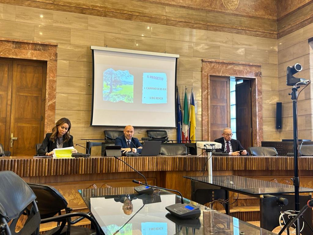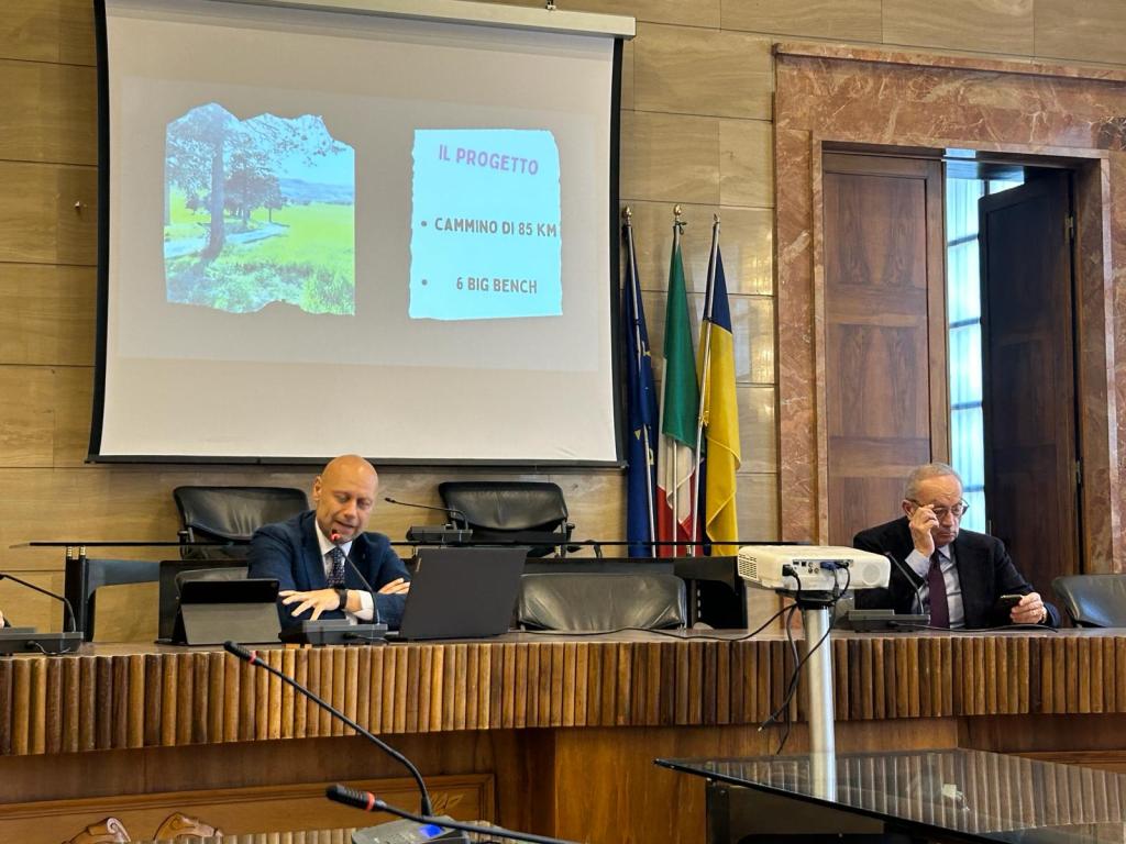 TERNI – Il cammino delle panchine giganti attraversa i borghi, i boschi, i prati e le colline di Montecastrilli. Favorisce la contemplazione della natura permettendo a ciascuno di osservare il paesaggio da un punto di vista inedito. Dalle sei Big Bench – l’inaugurazione il 25 aprile – dislocate tra Montecastrilli e le frazioni di Farnetta, Castel dell’Aquila, Quadrelli, Casteltodino e Collesecco. «Ci sono luoghi dove tutto scorre velocemente ed altri, come i nostri, dove il tempo si ferma» – dichiara il sindaco, Riccardo Aquilini. « Le nostre colline sono un valore aggiunto – aggiunge Aquilini – e abbiamo inteso creare un cammino che avesse unicità di paesaggio e non solo. Un percorso in gran parte su strade sterrate o di breccia, che esalta il turismo lento. E che si avvale di quelle installazioni, ormai trecento in tutto lo Stivale, di due metri e mezzo d’altezza e 3 di lunghezza, che i turisti apprezzano. Installazioni che sposano il progetto della Fondazione Big Bench Community Project secondo la visione del designer americano Chris Bangle e che sono inserite in un contesto di pregio».