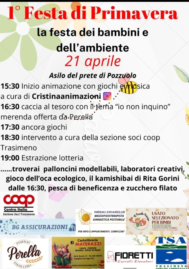 PERUGIA – Imparare giocando. L’educazione e la sostenibilità ambientale sono al centro della Prima festa di Primavera, prevista per domenica 21 aprile all’asilo “Gino Galeotti” di Pozzuolo di Castiglione del Lago, conosciuto anche come “l’asilo del prete”.