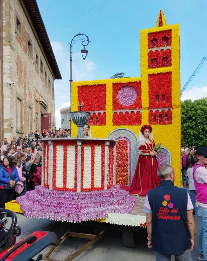 «Un vero e proprio assedio di folla, assai gratificante, a testimoniare che i borghi italiani con la propria storia e le rispettive peculiarità sono il valore aggiunto del nostro Paese», ha commentato Alberto Bevilacqua, popolare conduttore tv testimonial d’eccezione dell’edizione numero 54 che, grazie alla collaborazione tra le associazioni Eventi Castiglione del Lago (che organizza la manifestazione) e I Borghi più belli d’Italia, ha per tema “l’acqua nei borghi italiani”, con l’obiettivo di sensibilizzare tutti sempre di più sulle problematiche che affliggono non solo il lago Trasimeno. Tutto esaurito, insomma, nella prima delle tre giornate che esaltano la kermesse castiglionese (si replica con le parate anche domenica 28 e, in notturna, martedì 30) che fino al primo maggio andrà a celebrare la storica coltivazione dei tulipani che approdò negli anni Trenta in zona grazie all’intuizione di un facoltoso imprenditore olandese. Soddisfazione che rende anche merito duecento volontari dell’associazione , ai tre mesi di lavoro impiegato da progettisti, tecnici, fabbri, elettricisti, falegnami e idraulici per realizzare le imponenti strutture semovibili, e ai tanti cittadini che hanno trascorso le ultime 48 ore prima del taglio del nastro a “spetalare” i 150.000 tulipani recisi arrivati da vari mercati nazionali e internazionali per poi attaccarli uno ad uno sui carri allegorici.