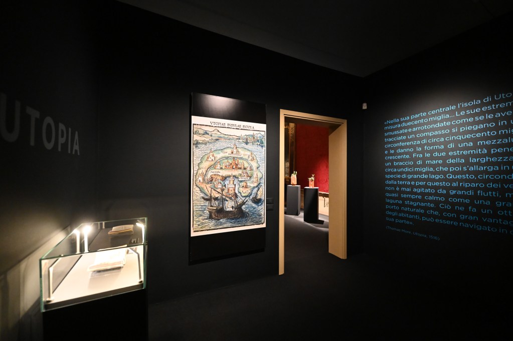 «La mostra, lontana dal voler testimoniare contenuti ideologici, esprime la necessità di render centrale l’opera e la poetica degli artisti prima ancora che le ricadute a livello sociale e politico, pur avendo tutte le opere esposte relazioni con contesti storici attuali se non addirittura legati a ciò che potrebbe riservarci il futuro, con le sue incertezze e inquietudini, promesse e opportunità – afferma il curatore Marco Tonelli – L’unica risposta possibile alle ansie della nostra epoca è l’opera d’arte non come soluzione o risarcimento, ma pratica autonoma immaginifica, separata ma non indifferente dal reale, proprio come l’isola di Utopia, un paradiso utopico distaccato dal resto del mondo ma allo stesso tempo una proiezione di ciò che esso potrebbe essere».