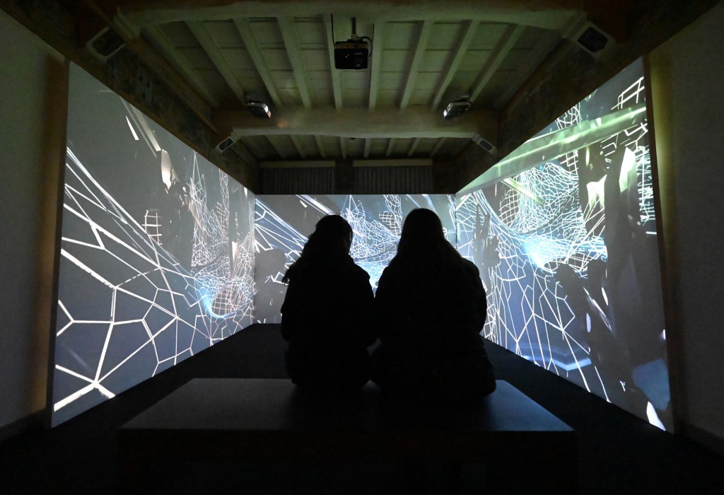 Giuseppe Penone è uno dei più importanti artisti italiani dagli anni ’60 ad oggi che ha da sempre lavorato sulla e attorno alla natura ed in mostra è rappresentato da Struttura del tempo, dove il bronzo della struttura testimonia il profondo legame che esiste tra la fusione e la crescita vegetale; anche Davide Benati e Nicola Toffolini utilizzano media tradizionali per i loro studi, uno prediligendo la pittura che sublima le iconografie della natura e uno il disegno con cui realizza paesaggi di mondi utopici dove tutto sembra riportarci a una condizione futuribile; Paolo Canevari ha fatto del riuso dei materiali un tratto distintivo del suo lavoro come testimoniato dalla serie in mostra, Black Pages, dove antiche cornici dorate custodiscono come reliquie fogli di giornale ricoperti di olio di motore combusto; Loris Cecchini indaga tematiche legate all’ambiente inteso come spazio di (ri)adattamento tra bisogni umani e nuovi materiali creando sculture con materiali insoliti dove emerge la sperimentazione tecnica nella realizzazione, mentre Giuliana Cunéaz crea ambienti di grande coinvolgimento attraverso l’uso di opere digitali e interattive con videoproiezioni e screen paintings, modellazione 3D e Intelligenza Artificiale.