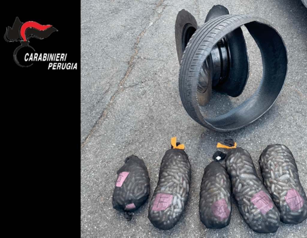 Gli sviluppi investigativi hanno consentito di appurare che il principale canale di rifornimento dello stupefacente per l’associazione era il nord Europa. Nel corso delle indagini sono stati effettuati numerosi recuperi di stupefacenti anche da parte di altre forze di polizia: il 19 marzo 2023, al valico di Bardonecchia, un uomo di origine campana è stato sottoposto a perquisizione e trovato in possesso di 36 chili di stupefacente – di cui 31 di eroina e 5 di cocaina – suddiviso in centinaia di ovuli, celati all’interno di una ruota di scorta. La settimana successiva, un altro maxi sequestro di droga è stato effettuato in Umbria, lungo il raccordo Bettolle — Perugia: in quel caso sono stati controllati 2 cittadini portoghesi che, ad altissima velocità, viaggiavano su un’autovettura che trasportava, sempre celati all’interno di uno pneumatico di scorta, 13 chili di eroina e alcune centinaia di grammi di cocaina. Qualche giorno dopo nel capoluogo umbro venivano tratti in arresto nella flagranza del reato di detenzione e spaccio di stupefacenti ulteriori 4 cittadini nigeriani e sequestrati più di 1 kg di eroina.