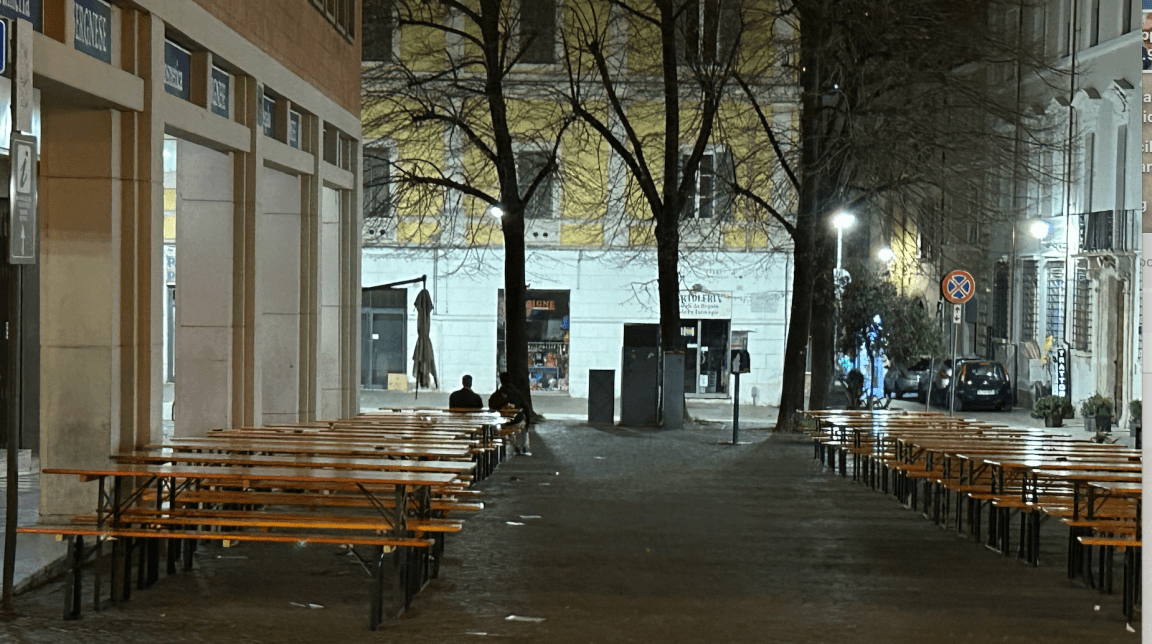 La caffetteria che ha lo spazio più importante in piazza della Repubblica si è rivolta ad un legale: chiederà i danni della perdita di fatturato al Comune di Terni e molto altro. Loro e altri otto esercizi pubblici sono rimasti gli unici a finire sotto la panca. Nel senso che i tavoli messi al bando sono stati esclusivamente i loro. Le panche dello street food messe tra piazza della Repubblica e piazza Solferino piazza della Repubblica senza tavoli all’aperto mentre in piazza Solferino i ristoratori hanno apparecchiato all’aperto per servire la cena visto il clima estivo. «Finalmente, piazza Solferino senza auto» – il commento di un cliente.