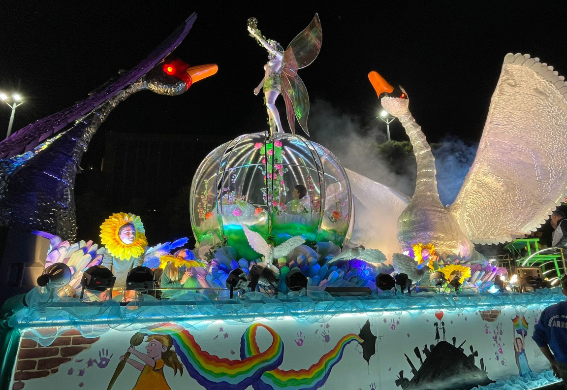 L’esplosione di colori nelle foto e nei video di Umbria7 la sera della sfilata dei carri allegorici