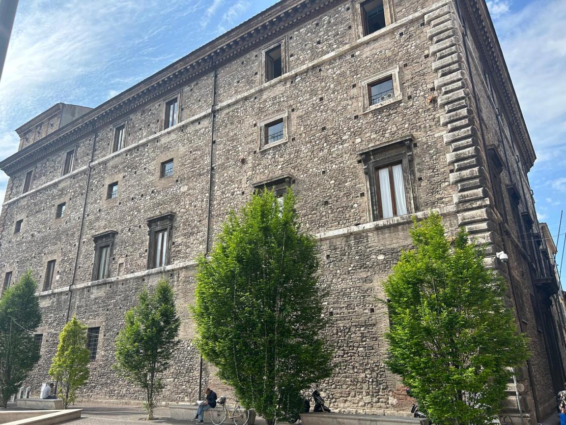 TERNI – È una calda primavera inoltrata ma a Palazzo Spada il clima è natalizio. Non certo per la pace – la tensione politica è sempre all’ ordine del giorno – ma per gli addobbi. A cinque mesi di distanza ci sono ancora le lucine montate sugli alberi che fanno da perimetro all’ edificio del Cinquecento.