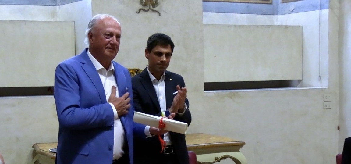 PERUGIA – «Per la dedizione, l’autorevolezza e la capacità con cui l’associazione assicura alla collettività una sempre più qualificata assistenza ai pazienti oncologici e alle loro famiglie e fornisce un valido supporto alla ricerca attraverso numerose e qualificate donazioni», questa la motivazione del Comune di Perugia che ha conferito all’associazione Aronc-Amici della radioterapia e oncologia clinica, presieduta da Manlio Bartolini, il Baiocco d’oro, uno dei più importanti riconoscimenti della città di Perugia, assegnato dall’amministrazione comunale a personalità e realtà che si sono distinte nel loro operato per il bene comune. A consegnare il riconoscimento al presidente Bartolini, nella sala Rossa di palazzo dei Priori, è stato il sindaco di Perugia Andrea Romizi.