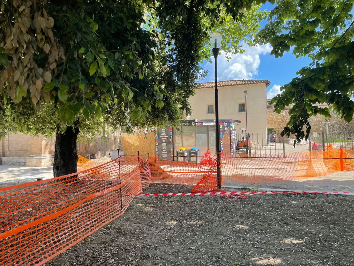 TERNI – L’ estate di Terni inizia il 13 giugno nel parco della Passeggiata, probabilmente con i lavori ancora in corso. Quel restyling da meno di un milione di euro (fondi del Pnrr) che doveva essere ultimato il 5 febbraio, con una proroga al 6 aprile, è ancora in atto. Le foto scattate la mattina venerdì 17 maggio da Umbria7, documentano il ritardo dei lavori. La pavimentazione del piazzale antistante la ex chiesa del Carmine è ancora da terminare, l’asfalto è da rimuovere per essere sostituito con un nuovo tipo, gli arredi da posizionare, l’illuminazione da rinnovare.