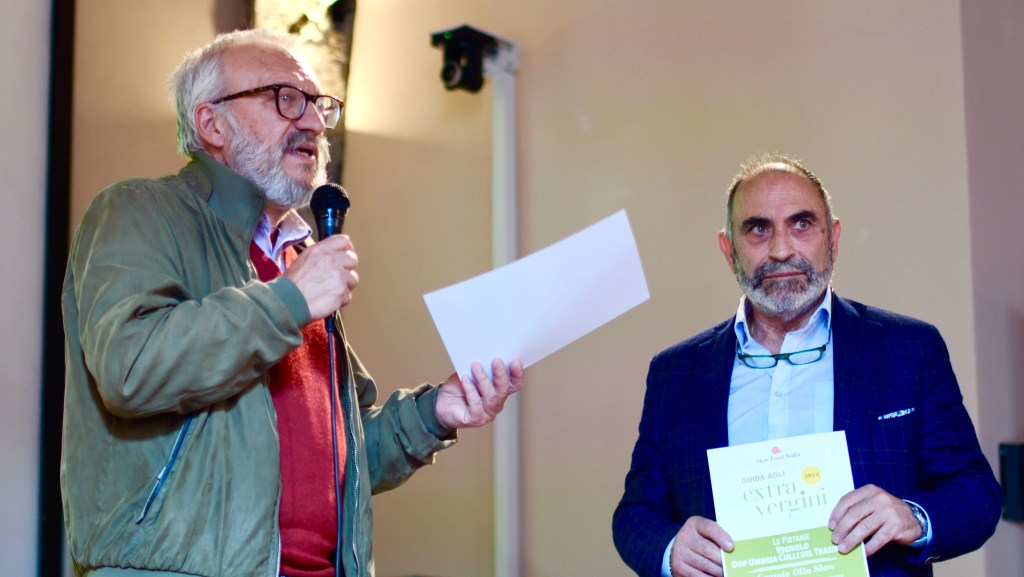 I riconoscimenti ai produttori dei migliori extravergini della Guida sono andati alle aziende: Cm (frantoio bio); Marfuga ( Dop bio; sassente); Decimi (emozione; n51); Viola (almanacco; costa del riparo); Batta (dop bio; extra bio); Sambuchi (dop vignolo bio); Antonelli S.Marco (chiuse di satriano bio); Tega (olio del cardinale); Il Fontanaro (olio della pace bio). Poi il momento di “risveglio”, in cui i partecipanti sono stati accompagnati dalla performance dell’attore teatrale, nonché presidente della Cooperativa di Comunità Surgente di Avigliano Umbro che si occupa della gestione della foresta Fossile di Dunarobba, Massimo Manini: «Essendo a capo della Cooperativa, per me tematiche quali la salvaguardia e la tutela dell’ambiente e della natura sono particolarmente importanti – afferma Manini – Nel mio impegno quotidiano non c’è solo l’attività di attore e regista, ma anche la preservazione del mondo che ci circonda».