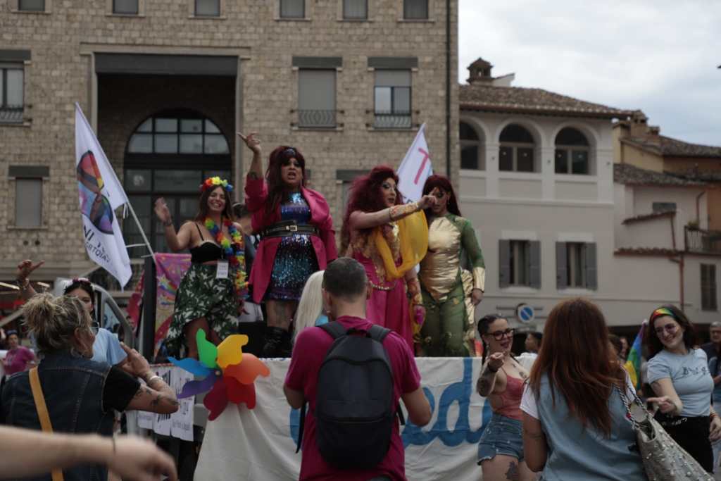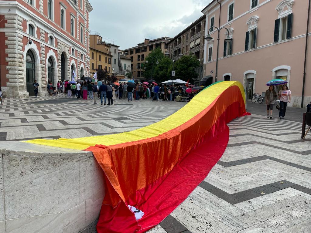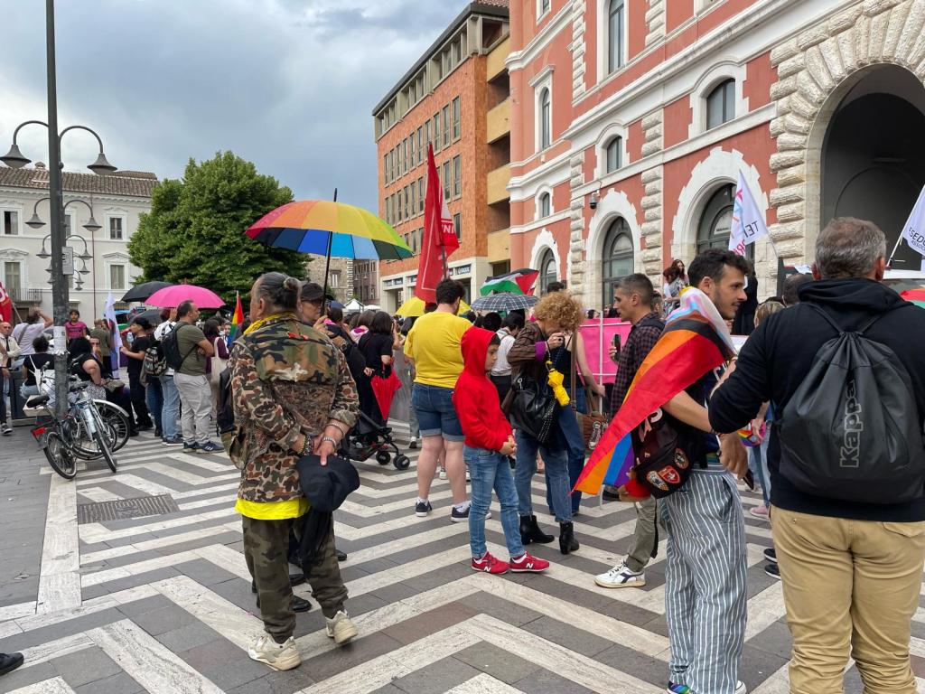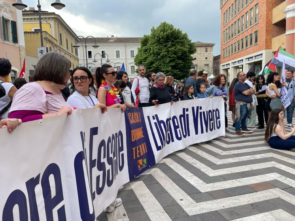 TERNI – Partenza da piazzale della Rivoluzione francese, passando per viale Curio Dentato, viale Benedetto Brin, viale Campofregoso, lungonera Savoia, rotonda obelisco Lancia di Luce, corso del Popolo, piazza Mario Ridolfi, piazza Europa, per arrivare fino a piazza Solferino. 42 associazioni in campo per gridare ai diritti civili della comunità Lgbtqia+. Tantissime le persone, dai più piccoli ai più grandi che hanno aderito alla manifestazione organizzata da EsedomaniTerni in occasione del primo Transfem Terni Pride. Il primo ma è già un successo, nonostante il maltempo che a tratti ha fatto aprire gli ombrelli (rigorosamente arcobaleno) a quanti hanno preso parte alla sfilata.