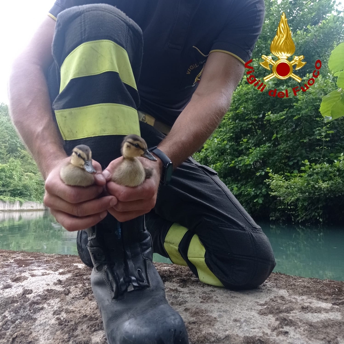 Cuccioli di germano reale salvati dai vigili del fuoco