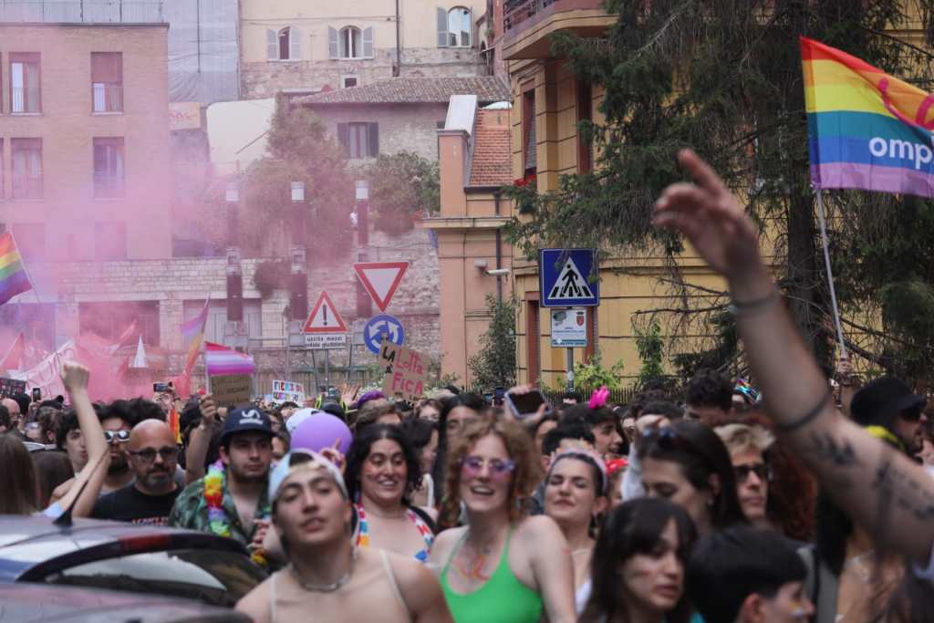 Guastafeste il motto di quest’anno, per il corteo regionale che ha portato in strada migliaia di persone che chiedono pari diritti e pari dignità per tutta la comunità LGBTQIA+. Promosso da Omphalos, l’Umbria Pride ha visto la partecipazione di tantissimi cittadini: in prima fila anche la candidata sindaca Vittoria Ferdinandi: «Partecipiamo a questo meraviglioso corteo perché è in coerenza con lo slogan della nostra campagna elettorale: “ogni cittadino e ogni comunità”. Alla radice della nostra visione politica c’è innanzitutto il rispetto per la dignità di ogni persona, intesa nella sua irriducibile unicità – ha detto -. E allora se “Perugia è di tutti” come dice anche Margherita Scoccia, noi siamo qui per praticare un’idea reale di città davvero rispettosa di tutti, che sa riconoscere e valorizzare le diversità, che è capace di includere e di non lasciare indietro nessuno. Una piazza dei diritti non può essere considerata una piazza divisiva. Perché i diritti se crescono per uno crescono per tutti. Siamo qui perché è un giorno importante per riaffermare e difendere i diritti sanciti dall’articolo 3 della nostra Costituzione. Non si tratta di indottrinamento ne’ di ideologia ma prima di tutto di umanità, di promuovere una cultura del rispetto e della diversità che è il migliore antidoto ad ogni forma di discriminazione e di odio. Mi auguro di tornare il prossimo anno da Sindaca per portare il patrocinio della nostra Città».