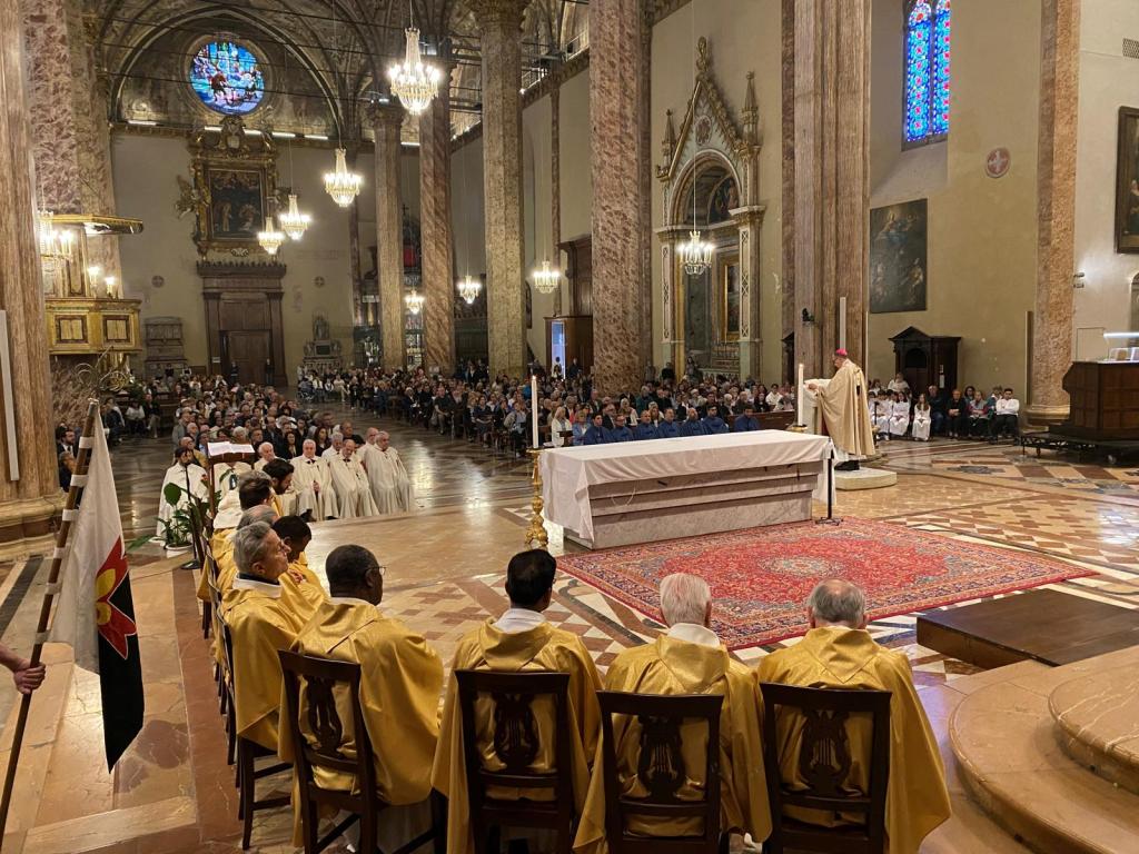 «Chi sa inginocchiarsi davanti all’Eucaristia – ha proseguito il presule – non resta indifferente alle situazioni che la vita gli fa incontrare, ma sa farsi prossimo, sa spezzare il proprio pane con l’affamato, condividere l’acqua con l’assetato, rivestire chi è nudo, visitare l’ammalato e il carcerato. Chi si lascia plasmare dall’Eucarestia trova il vero antidoto all’egoismo; riscopre la gratuità e la logica del dono. Una comunità che si nutre dell’Eucarestia non rimane preda di divisioni e contrapposizioni: l’unico Pane fa, dei molti che siamo, con le nostre legittime diversità, un solo corpo». L’Eucaristia, ha continuato l’arcivescovo, è «un dono di benedizione che raggiunge le case, la scuola, le istituzioni, i luoghi di lavoro e d’incontro; è annuncio di speranza: Dio non abbandona nessuno e mediante la disponibilità di tanti si fa presente per la consolazione, il conforto e l’aiuto di tutti». Il sacramento della comunione, ha detto ancora Maffeis, ricorda «che il bene della città passa dalla concordia sociale, fondata su valori essenziali: il bene comune, i diritti delle persone e dei gruppi primari, la difesa della vita, l’attenzione ai più poveri. Chi sarà chiamato ad amministrare la Città possa assumere questa responsabilità con coscienza onesta e capacità di visione, nella ricerca concreta delle convergenze possibili e di azioni costruttive a beneficio di tutti».