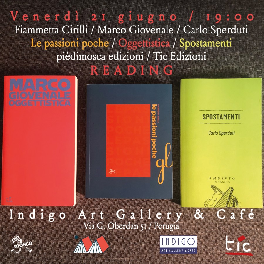 PERUGIA – Mannaggia – Libri da un altro mondo venerdì 21 giugno si trasferisce per l’aperitivo da Indigo Art Gallery Cafè, per un reading che vedrà come protagonisti Fiammetta Cirilli, Marco Giovenale e Carlo Sperduti.