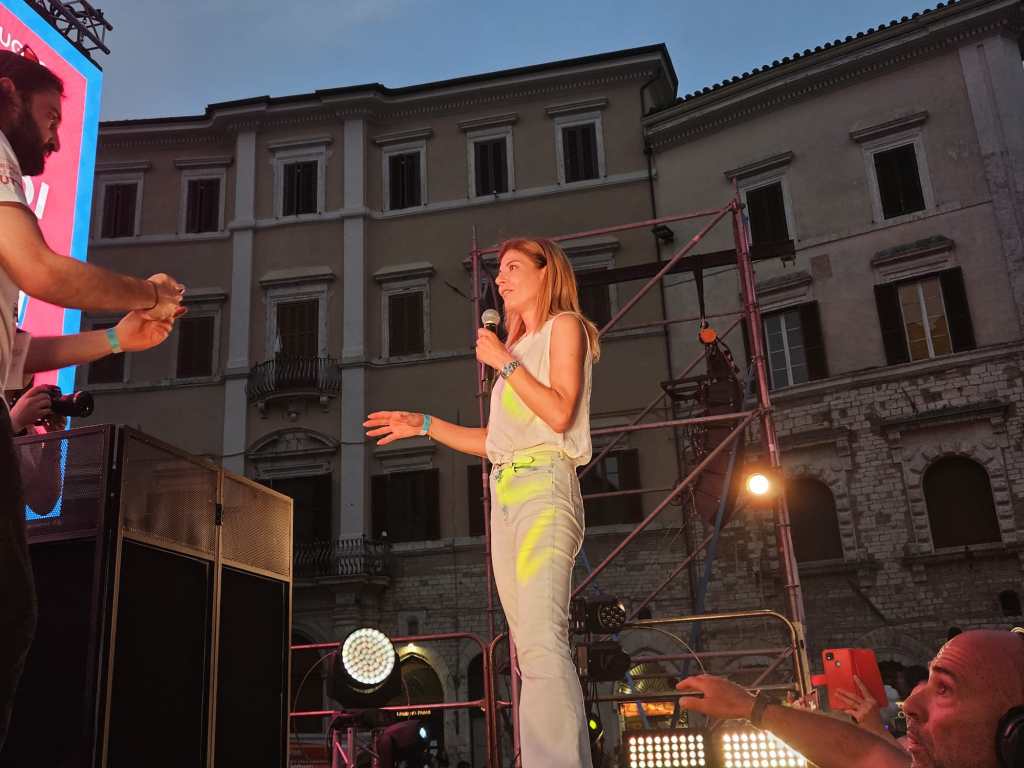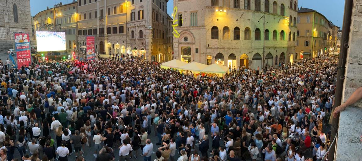 «Guardateci – dice dal palco – questa è la nostra piazza e voglio essere il vostro sindaco. Il sindaco che chiamate la sera al telefono, cui avete un rapporto diretto. C’è chi lo definito clientelismo, io lo definisco umanità. Insieme faremo tantissime belle cose. Avete in mano una città sana, bella, che finalmente ha iniziato a correre. Ora siamo davanti a un nuovo Rinascimento, e lo faremo insieme. E ridisegneremo una nuova città. Che pensa ai giovani, alle famiglie alle persone». «Usciremo dall’isolamento a cui la sinistra per 50 anni l’aveva relegata. Investiremo nelle strade, finalmente. Riusciremo a fare più di quello che abbiamo già fatto. Ma soprattutto c’è il rapporto con voi, bellissimo, che si è creato negli anni: siete stati voi a crederci e a scrivere sulla carta che è quello che volete». «Starò con voi per strada, nei quartieri. Sarà faticoso ma lo faremo insieme. Saranno anni bellissimi, per far rinascere questa città. In questa lunghissima cavalcata, piena di persone, siamo stati in grado anche di dirci delle cose pesanti, ma ci siamo guardati in faccia e abbiamo trovato le soluzioni. E in questo Rinascimento se tra 180 giorni non avrò fatto la metà delle cose che ho promesso potrete dire che non sono stata un buon sindaco. Ma stasera vi dico con grande determinazione, con forza e con tutto l’amore che mi avrete dimostrato che ho l’assoluta volontà di portare Perugia a fare quel salto di qualità che merita. Ora sta a voi dare fiducia a una politica che dieci anni fa ha risvegliato questa città. Manca pochissimo e io vi aspetto lunedì sera perché noi vinceremo. Questa città non tornerà più indietro». Prima del grazie e del «vi voglio bene», il gran finale: «Siamo un mare di persone, anzi al mare non ci andiamo. Noi restiamo qua».