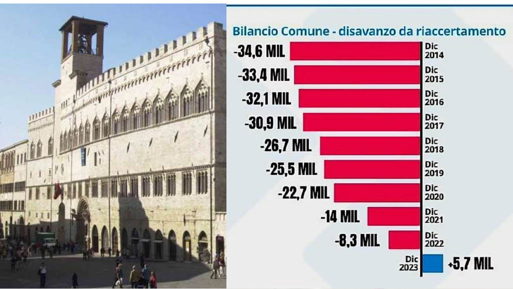 Ci sta che in Umbria, regione dove si torna tra poco a votare, i sindaci della sinistra più campo largo facciano un gran baccano. Ma fino a un certo punto. Se poi a dare frenetici colpi al tamburo della protesta è Perugia, la cosa diventa buffa. Infatti il generoso – per niente avveduto – sindaco Romizi, come risulta dalla tabella che pubblichiamo, ha passato gli ultimi dieci anni della sua vita a rimettere in sesto i conti della sinistra e poi ha lasciato ai suoi successori, in cortese dono, 5,7 milioni di avanzo.