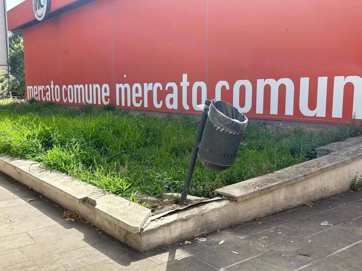 Prima però bisognerà risolvere la situazione di degrado che caratterizza l’area di centro città, a cominciare dalla sosta selvaggia, che come si vede dalle foto riguarda anche le biciclette. Lo scatolone arancione letteralmente avvolto dall’erbaccia, con i bordi delle aiuole rotti, i cestini divelti , i sacchi dell’immondizia aperti. L’odore, di domenica mattina, è sgradevole. Ma di lunedì non va certo meglio.