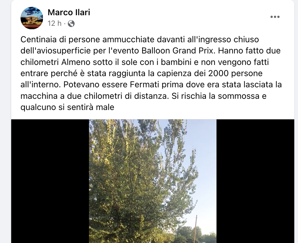 Tutti si aspettavano i cancelli aperti dal pomeriggio, come da programma, invece il via libera è scattato alle 8 di sera. Con lo spettacolo che avrebbe dovuto iniziare poco dopo. Invece le mongolfiere hanno iniziato a levarsi da terra alle 21, quando attorno era tutto buio.