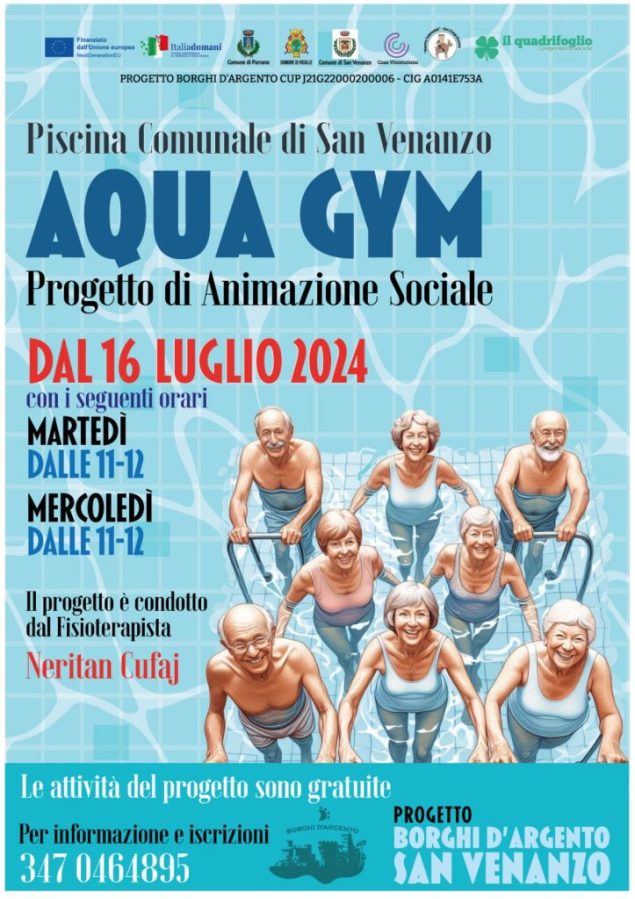 SAN VENANZO (Terni) – Partirà martedì 16 luglio il corso di Aquagym  alla piscina comunale di San Venanzo.  Una iniziativa attivata per venire incontro alle esigenze dei cittadini, in particolare degli anziani, ideata e realizzata sia per offrire un supporto dal punto di vista fisico-motorio che un’occasione di incontro per condividere una nuova esperienza di socialità.