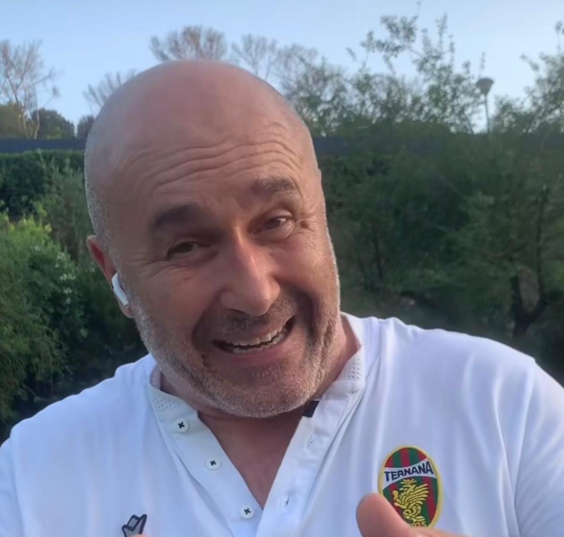 Stefano Bandecchi con la maglia della Ternana annuncia la sua candidatura alle regionali