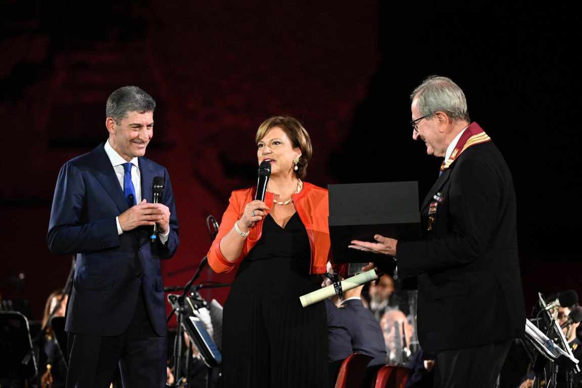 ASSISI (Perugia) – «Poiché nel corso della sua carriera e della sua attività è sempre stata guidata dai valori dell’amicizia, della solidarietà e dell’inclusione, gli stessi che ispirano la polizia di Stato», questa la motivazione per la quale lunedì 29 luglio, nella cornice delle Terme di Caracalla a Roma Francesca Di Maolo, presidente dell’Istituto Serafico di Assisi, è stata insignita del titolo di poliziotto ad honorem nel corso della serata dedicata al concerto della Banda musicale della Polizia di Stato presentato da Milly Carlucci, alla quale sono intervenuti anche il Ministro dell’Interno Matteo Piantedosi e il Capo della Polizia, Vittorio Pisani che ha consegnato il titolo a Di Maolo.