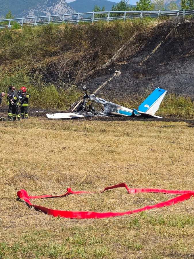 A seguito dell’impatto si è scatenato un incendio che ha coinvolto anche la vegetazione circostante, prontamente spenta dai caschi rossi.