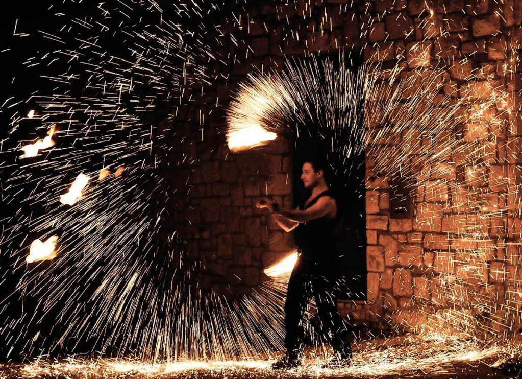 Alle 21.30 in piazza Coragino “Gran Gala”, un viaggio guidato da un Virgilio contemporaneo, sotto forma di voce fuori campo, attraverso un’incredibile miscela di fiamme, scintille, danza aerea e acrobazie con Lux Arcana