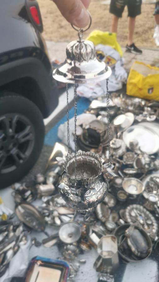 TERNI – Due giovani partenopei, incensurati di 31 e 21 anni, sono stati trovati in possesso di 92,5 kg di argentiera, nascosti in otto borse a bordo della loro autovettura e per questo denunciati. All’interno vi erano numerosi calici, incensiere, anche di quelle adoperate durante le funzioni religiose, vassoi, monete antiche, fruttiere, cornici e posate.  Per un valore totale di 84mila euro. A smascherarli la pattuglia della polizia di Stato in servizio sulla A1,  che stava effettuando un controllo di routine di un veicolo e dei suoi occupanti presso l’area di servizio “Giove Ovest”.