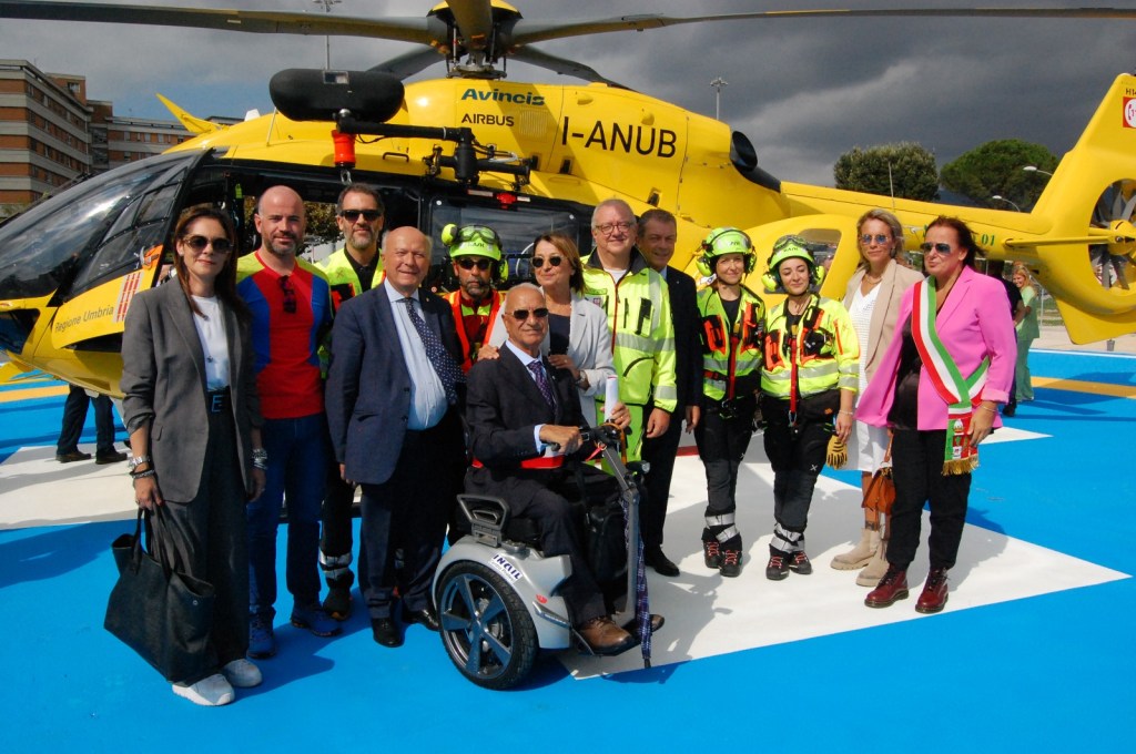 TERNI – L’elicottero “nibbio” dedicato al soccorso in Umbria è “atterrato” anche all’ospedale di Terni. È stata inaugurata il 26 settembre la pista di atterraggio adiacente al pronto soccorso del Santa Maria. Si tratta di un collegamento rapido tra le strutture ospedaliere regionali e che aiuterà a salvare la vita a malati affetti da patologie tempo dipendente. La base, progettata con elevati standard tecnici e di sicurezza, è costata 125 mila euro (80mila per i lavori di edilizia e 45mila per le attrezzature necessarie) e da metà ottobre sarà anche dotata di lampade idonee al volo notturno divenendo l’unica pista di atterraggio umbra con questa caratteristica.