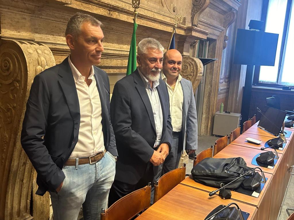 Il passaggio di consegne nella conferenza stampa di giovedì mattina a palazzo Spada, con lo stato maggiore del gruppo consiliare e lo stesso Kenny.