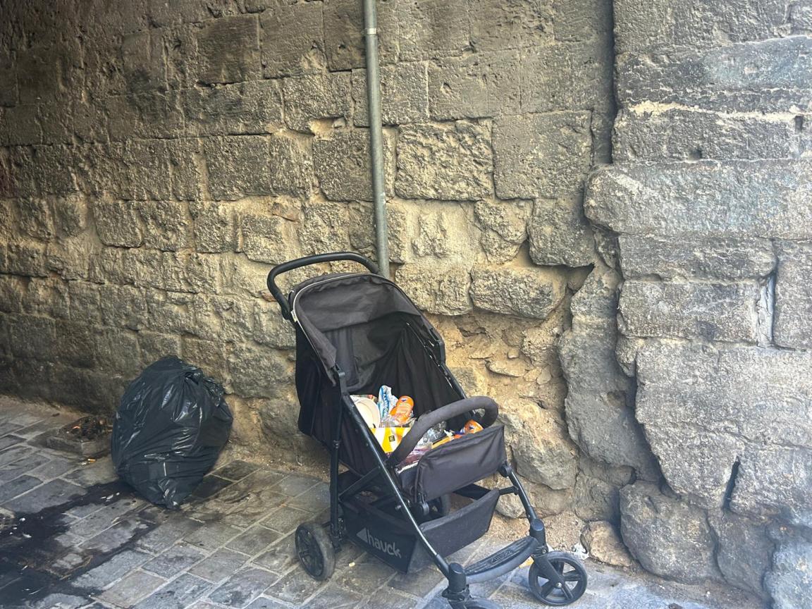 In vicolo San Lorenzo il rimedio è stato trovato. E’ spuntato un passeggino. «Non è da smaltire. E’ da utilizzare». E infatti ogni giorno si riempie di lattine e di ogni altro “ben di Dio”.