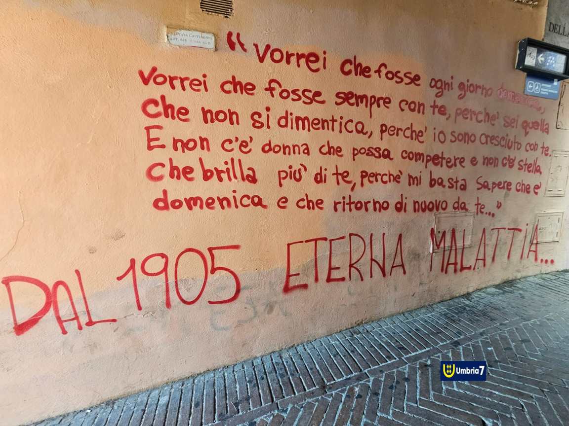 E anche stavolta a fare da padrone è di nuovo il calcio. Così ora ad accogliere i turisti c’è questo poema in rosso che spicca sul colore del muro, offrendo ai passanti una dedica d’amore per la squadra del cuore.