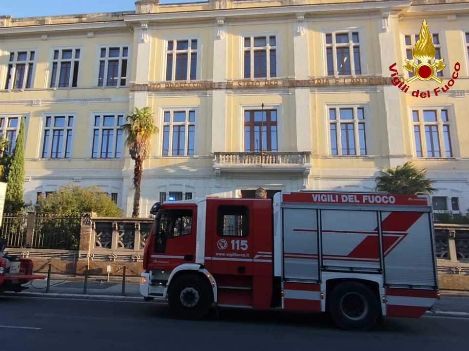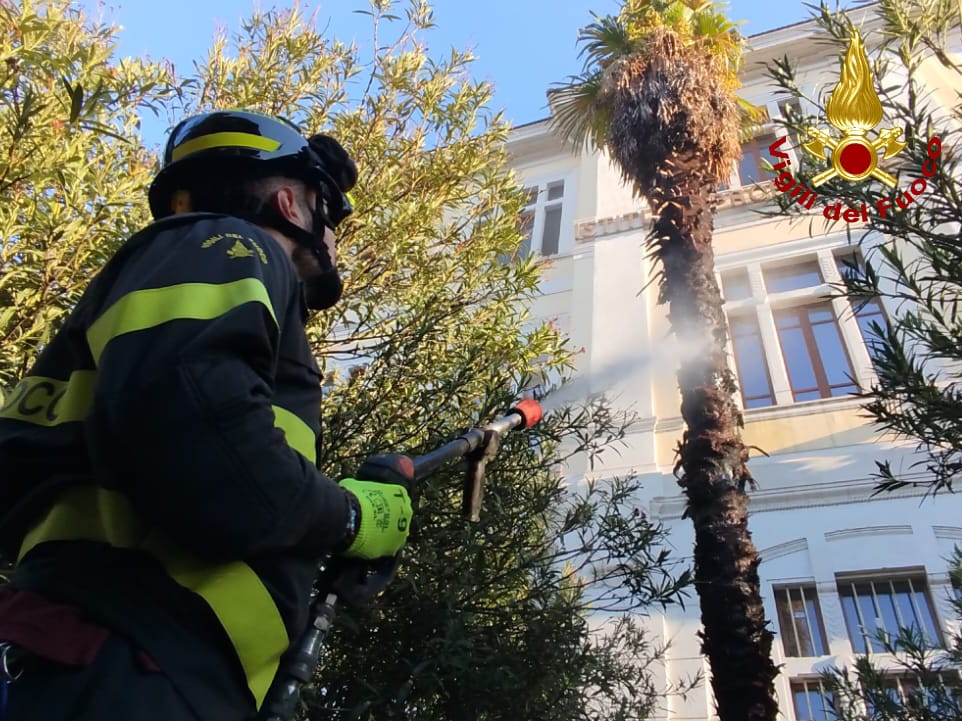 A fuoco una palma davanti all’Ipsia, evacuata la scuola