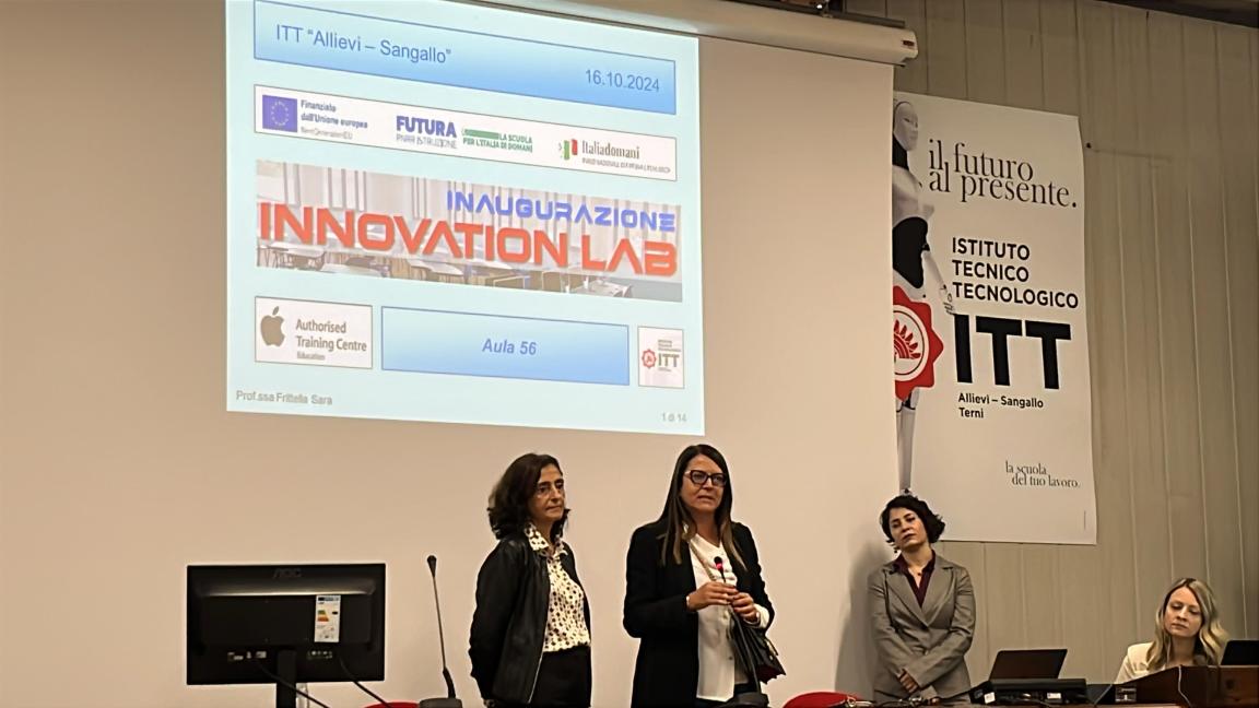 TERNI – All’Istituto tecno – tecnologico “Allievi- Sangallo” di Terni è stato inaugurato il laboratorio chiamato “Innovation Lab”, un laboratorio di nuova generazione dotato di una sezione specificamente dedicata al mondo Apple e di un’area dotata di arredi modulari, funzionali ad attività interattive e collaborative. Il laboratorio metterà a disposizione degli studenti 21 postazioni fisse dotate di Apple iMac, 10 Taglio del nastro per “Innovation Lab”MacBook, 20 Notebook Windows e un televisore touch screen da 86’’ dotato di AirPlay. L’equipaggiamento sarà inoltre completato da rack contenenti Switch, Access Point e router Cisco, oltre che da due server con i quali sarà possibile per gli studenti lavorare con la virtualizzazione, sia in ambiente Windows che Linux.