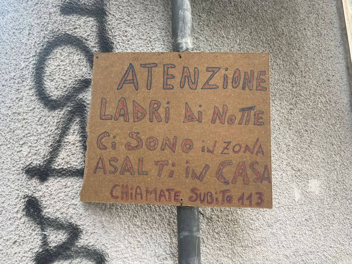 Terni – Sembra ci sia un vero e proprio “allarme” sicurezza nella zona di Borgo Bovio a Terni. Almeno a giudicare dal cartello che compare in bella vista in via Eugenio Chiesa. Grammatica a parte, il messaggio è chiaro e forte: «Attenzione ai ladri di notte. Ci sono in zona assalti in casa. Chiamate il 113».