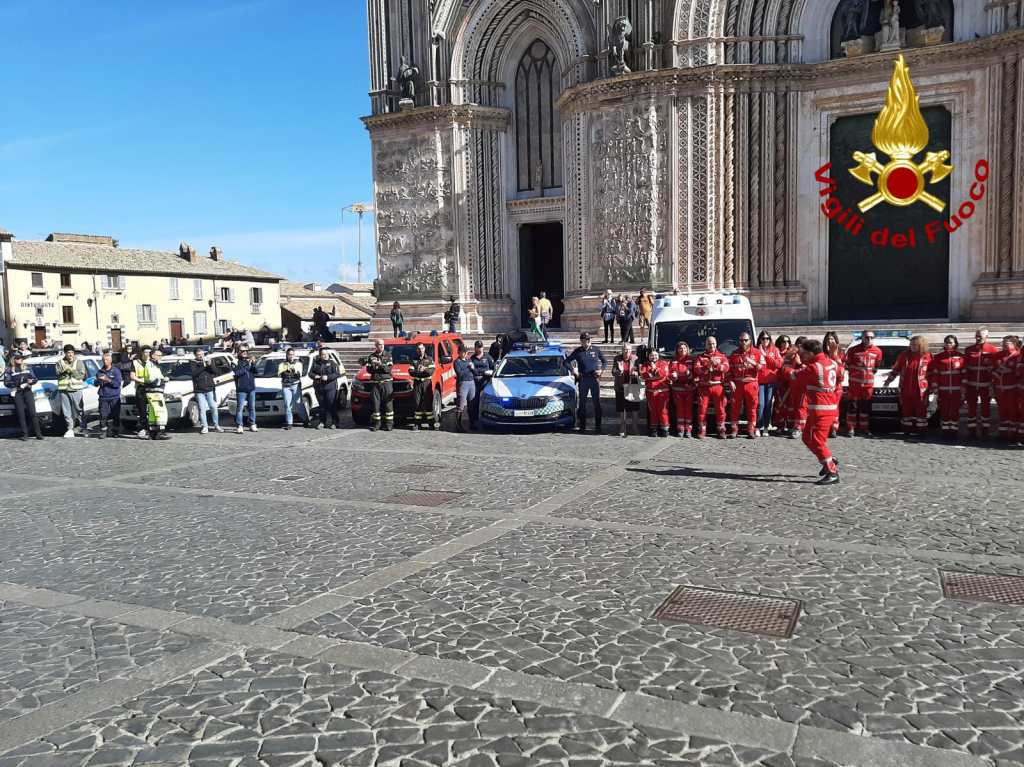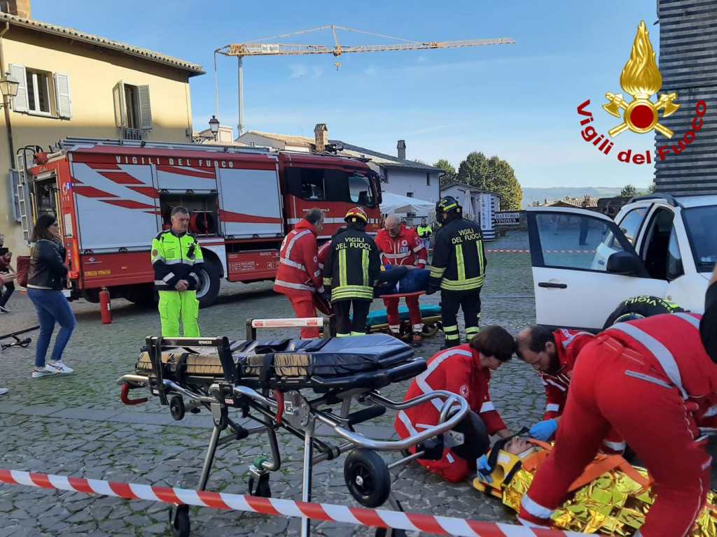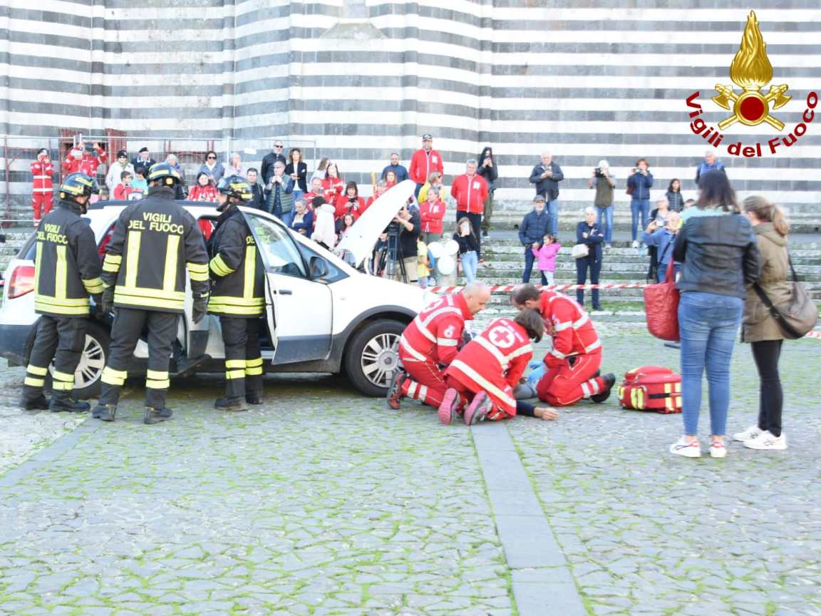 ORVIETO (Terni) – Croce rossa, vigili del fuoco e polizia stradale in piazza Duomo. Insieme hanno messo in atto una simulazione d’incidente, con persone ferite all’interno della vettura. Una iniziativa che ha l’obiettivo di sensibilizzare il pubblico sui rischi della guida in stato di ebbrezza.