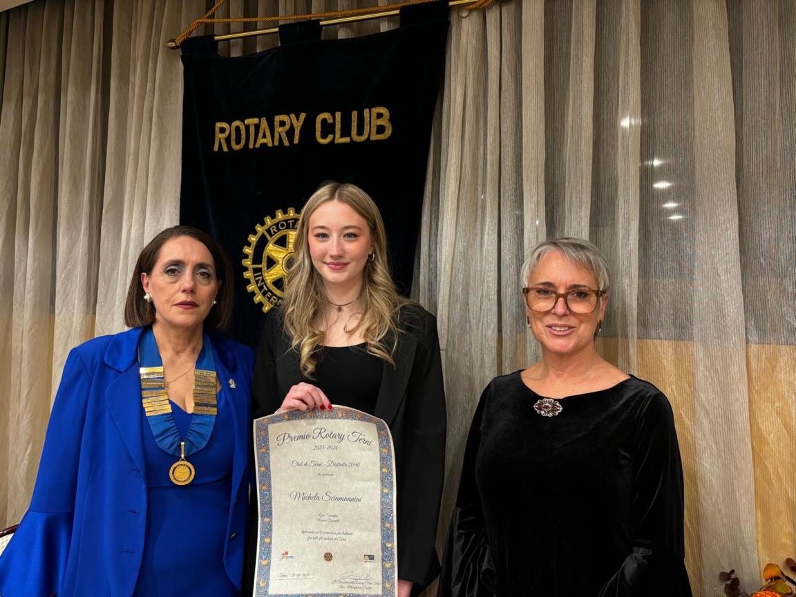 Michela ha ricevuto il Premio Rotary Terni dalla Presidente del Rotary Club di Terni, Margherita Cirillo, alla presenza dell’assessore all’Istruzione e Servizi sociali Viviana Altamura e della sua ex vice preside, Francesca Tini Brunozzi. L’ambito Premio Rotary Terni, la dichiara ‘il migliore diplomato 2023-24’ della città di Terni, assegnandole una borsa di studio di 2mila euro che sarà libera di utilizzare per finalità di promozione delle sue attitudini e competenze personali e professionali, in linea con il proprio progetto di vita.