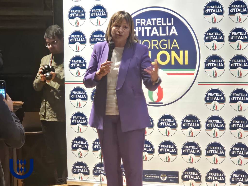 «L’Umbria una regione stupenda, è il cuore dell’Italia e da qui parte una nuova sfida, quella di continuare a governare questa regione come abbiamo fatto fino a oggi – ha detto Meloni – Rilanciando il turismo, per il quale Tesei ha fatto tanto, il lavoro, a fianco delle imprese e delle nostre eccellenze. Credo si possa andare avanti per fare un lavoro eccezionale in simbiosi con il Governo nazionale che sta facendo un ottimo lavoro sul piano nazionale e internazionale». Durante il suo intervento Prisco ha parlato di una lista «con radicamento sul territorio. Con consiglieri regionali uscenti e tanti amministratori, tanta società civile per il contributo di Fratelli d’Italia alla continuazione del buon governo del centrodestra. L’obiettivo è di non far tornare la sinistra che tanto male ha fatto all’ Umbria e di confermare un Governo che ha portato crescita in questa regione. In sintonia con il Governo nazionale che sta facendo molto bene». Così la presidente Tesei: «Noi questa regione dobbiamo farla correre per darle un posto tra le più sviluppate in Italia. La nostra regione – ha aggiunto – era fanalino di coda perché ha subito un isolamento infrastrutturale per 30 anni. Non possiamo pensare di tornare indietro dopo il grande lavoro fatto questi anni anche con Fratelli d’Italia. Abbiamo una combinazione straordinaria con il governo nazionale che rappresenta i nostri stessi valori. Si stanno mettendo soldi su famiglia e natalità come abbiamo fatto noi in questa regione».