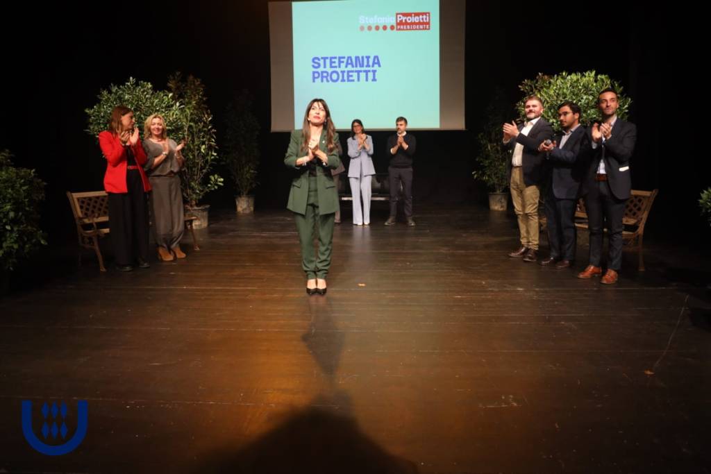 TERNI – Rilassata, sorridente. L’ esatto contrario dello stato della sanità pubblica in Umbria. Al teatro Secci di Terni, Stefania Proietti, per la presentazione delle sette liste che la sostengono, approfitta per rilanciare il modello pubblico della sanità. Ad iniziare dal Santa Maria. Che deve essere pubblico e nuovo, dice la candidata per il centrosinistra alla presidenza della Regione.
