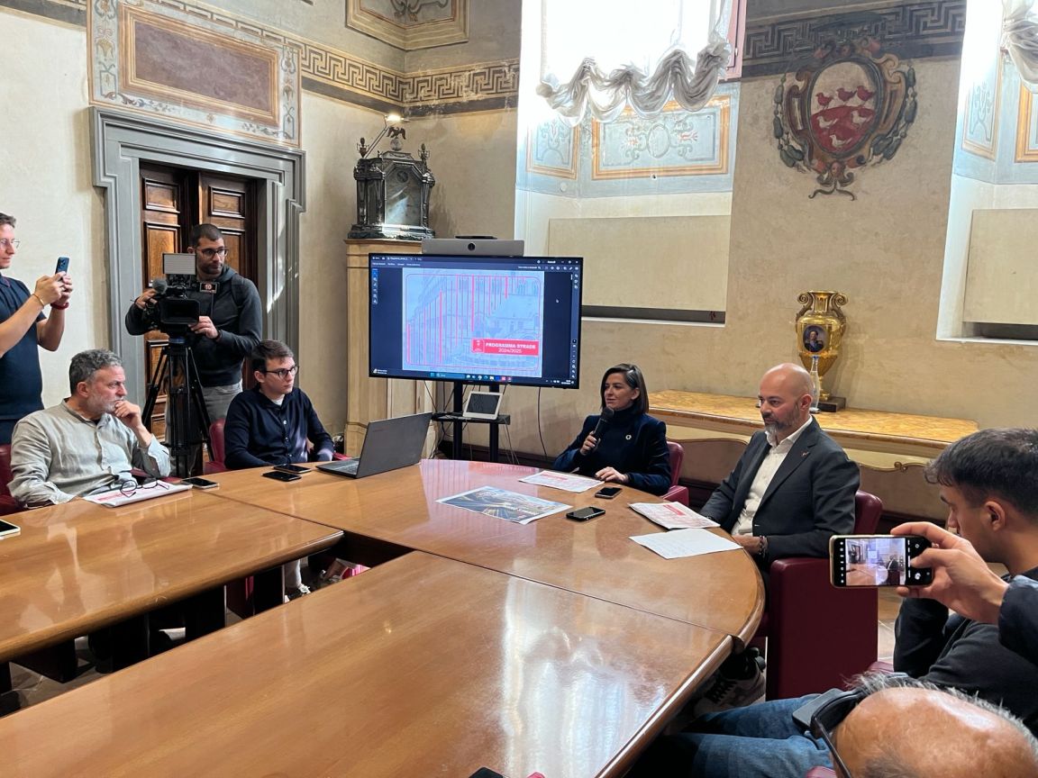 PERUGIA – Pronto il maxi intervento anti buche. Il punto sui lavori in corso per la manutenzione delle strade cittadine, su quelli che saranno progettati entro il 2024 e sulla programmazione 2025 è stato fatto oggi a palazzo dei Priori. Presenti la sindaca Vittoria Ferdinandi, l’assessore Francesco Zuccherini, dirigenti e tecnici degli uffici competenti del Comune di Perugia (l’ingegnere Antonio Tata per la Unità operativa Mobilità e Infrastrutture, il dirigente Roberto Chiesa e il responsabile del Cantiere, Bruno Leombruni, per la Unità operativa Manutenzioni e Protezione civile).