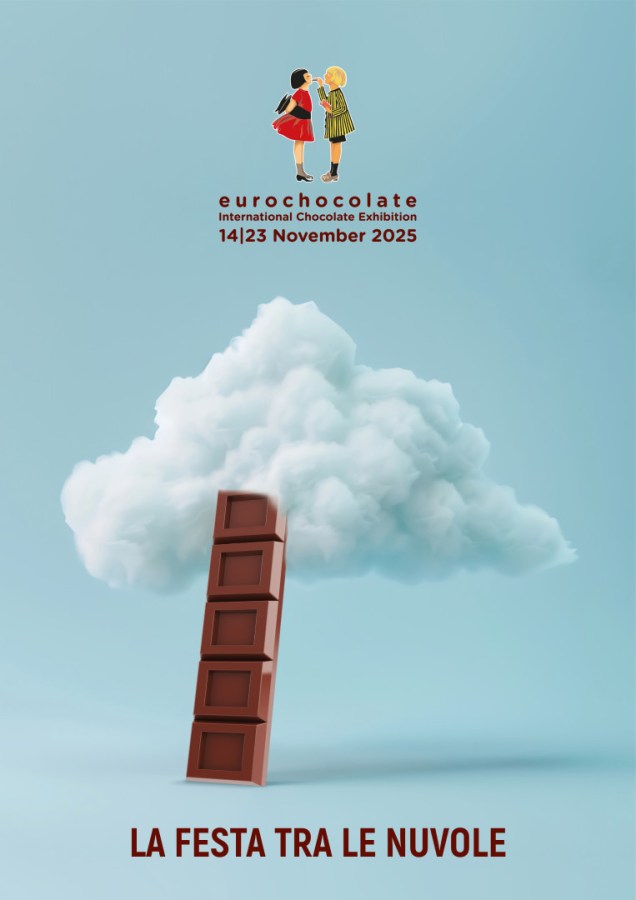 PERUGIA – Una tavoletta di cioccolato che svetta in alto fino a raggiungere una nuvola. È questa l’immagine sognante scelta da Eurochocolate per accompagnare la comunicazione della sua 31esima edizione che si terrà dal 14 al 23 Novembre 2025.
