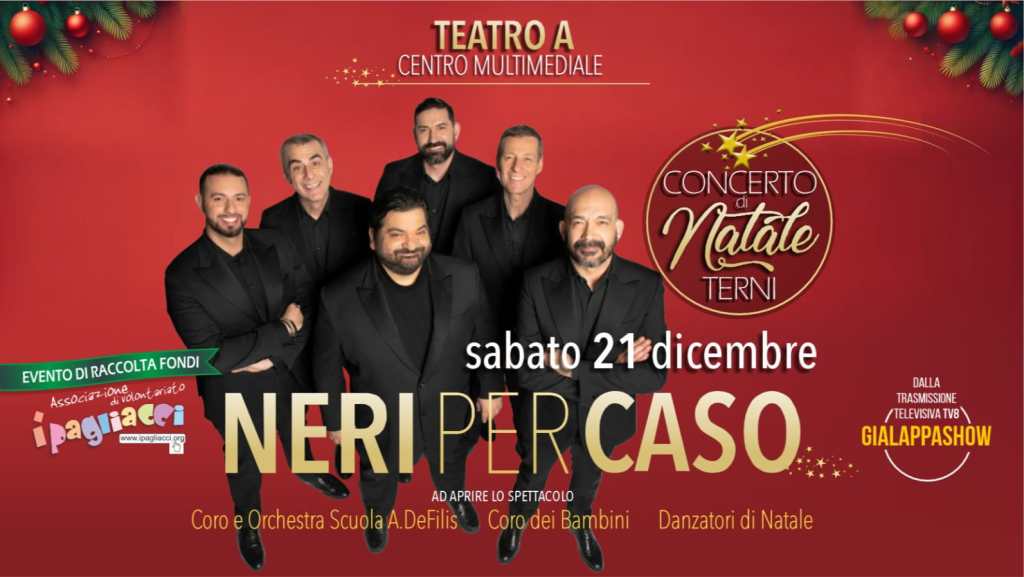 TERNI – Dopo il successo della prima edizione  – il Concerto di Natale con Michele Zarrillo – le associazioni Terni Città Futura e Argoo portano a Terni, sempre al Teatro A del Centro multimediale, i Neri Per Caso, sabato 21 dicembre alle ore   21.
