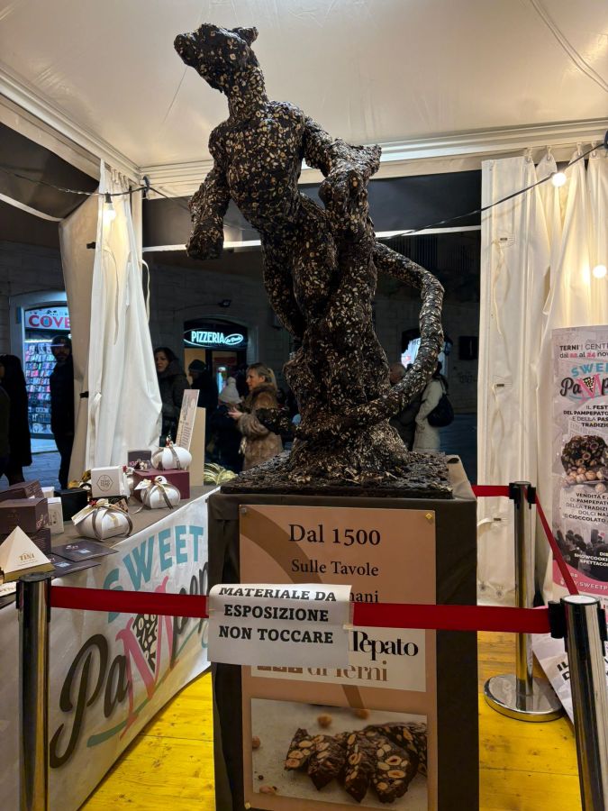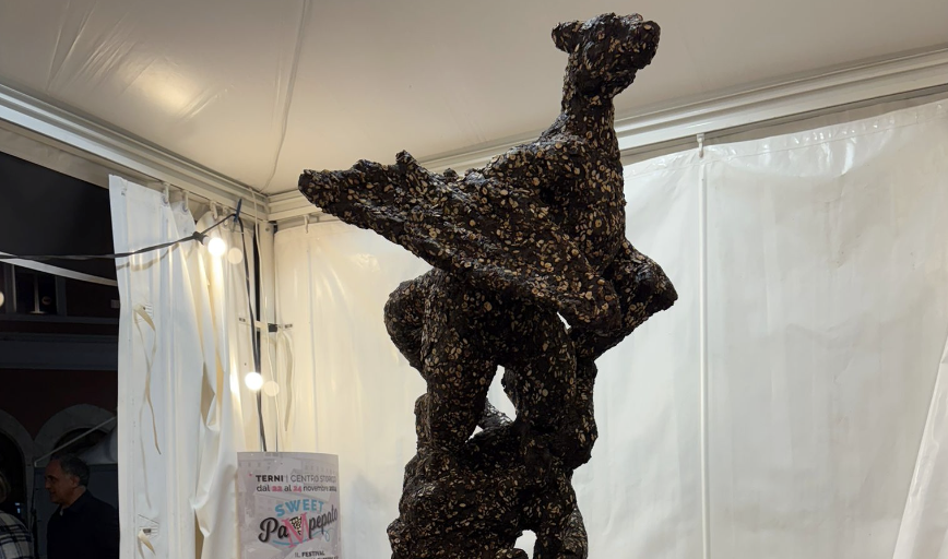 TERNI – L’unione di due elementi identitari della conca ternana. Da un lato il drago alato, il Thyrus, la cui scultura, rivisitata in chiave moderna, si può già ammirare alla rotonda Filipponi. Dall’altro lato il dolce ternano per eccellenza: il pampepato. Un connubio di arte e gastronomia che si incontrano in occasione di “Sweet Pampepato” grazie all’abilità dello scultore Marco Diamanti e dei suoi alunni dell’istituto artistico Orneore Metelli di Terni.