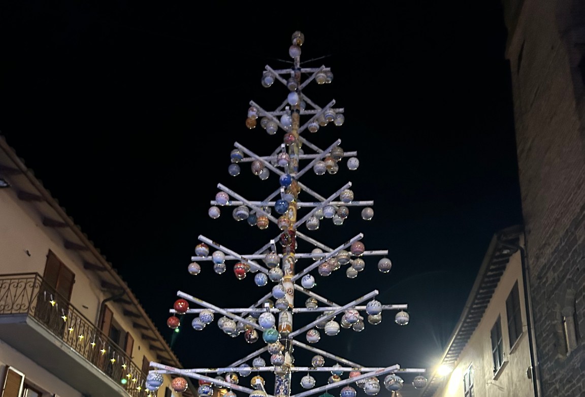 DERUTA (Perugia) – In un clima già natalizio, avvolto da un’atmosfera incantevole e magica, a Deruta il primo cittadino Michele Toniaccini insieme all’ospite d’onore Anna Falchi ha premuto il pulsante per la tradizionale accensione dell’Albero di Natale in Ceramica più grande del Mondo, dando così ufficialmente il via al ricco programma di iniziative natalizie tra arte, cultura e maioliche, che si protrarranno fino all’epifania.