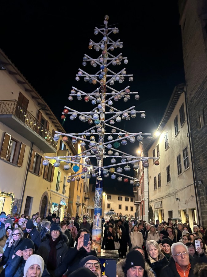 E dopo i saluti di Padre Gian Maria Polidoro, fondatore dell’Associazione Assisi Pax International e di Giulio Villani, presidente provinciale di Perugia di Aido Umbria, la parola è passata ad alcuni rappresentanti dell’associazionismo locale tra cui la Presidente della Pro Deruta Norma Numaca che ha ringraziato gli artigiani per aver realizzato questo importante Albero di Natale che rende orgogliosa tutta la comunità locale, mentre la presidente dell’Associazione Italiana Persone Down sezione di Perugia Susanna Starnini ha affermato: “Oggi siamo in tanti e se siamo tutti insieme, rimaniamo uniti e ci guardiamo negli occhi uno a uno, di sicuro non troveremo differenze perché in fondo siamo tutti uguali”.