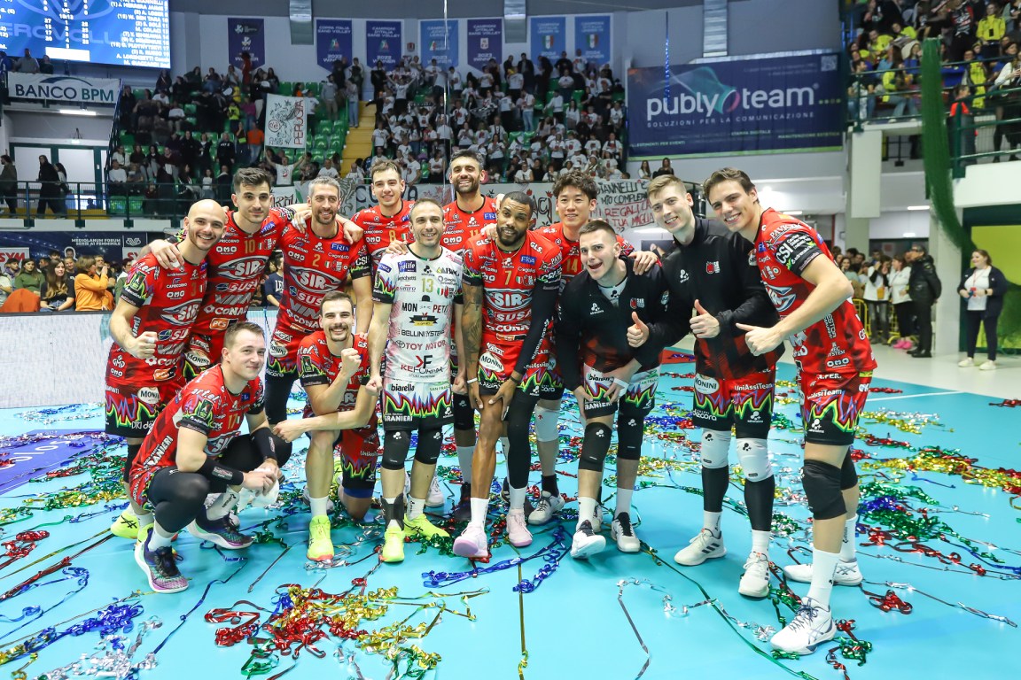 Sir Susa Vim Perugia: Giannelli 12, Ben Tara 15, Russo 5, Loser 8, Semeniuk 9, Plotnytskyi 15, Colaci (libero), Ishikawa 7, Solè 2, Herrera1, N.e: Piccinelli (libero), Candellaro, Zoppellari Cianciotta. All. Angelo Lorenzetti, vice all. Massimiliano Giaccardi.