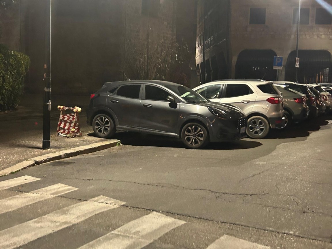 TERNI – Venerdì 6 dicembre, ore 20,30, via Carrara. Passato il varco della Ztl, aperta fino alle 21, le soste selvagge invadono i marciapiedi. Dove c’era l’edicola di giornali adesso c’è un parcheggio abusivo. Come se non bastassero quelli di fronte a Palazzo Carrara e sul lato dell’ex casa circondariale: di mattina, di pomeriggio e di sera ci sono almeno dieci auto in divieto. Non va meglio in piazza della Repubblica dove, nonostante i totem di UmbriaLibri, la giostrina dei cavalli, la pista di pattinaggio e le casine di legno, trovano spazio tre supercar. Le gondole no. Le gondole girano. Sono quelle della ruota panoramica alta 27 metri, 21 per l’esattezza, che hanno iniziato ad imbarcare una media di trecento passeggeri al giorno. Per il resto il centro città è un parcheggio abusivo a cielo aperto. Peraltro buio. In alcune vie la pubblica illuminazione non funziona da giorni. In compenso chi le attraversa è costretto a fare lo slalom tra new jersey e macchine. I new jersey messi nel quartiere Clai per risolvere il problema delle soste selvagge sono stati spostati per fare spazio alle auto e il risultato è che adesso ci sono sia le auto che i blocchi di plastica bianchi e rossi. Niente luminarie per piazza Clai. E niente pace per i residenti, che ormai evitano di uscire di casa la sera.