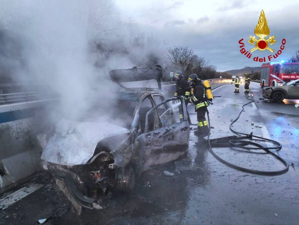 PASSIGNANO SUL TRASIMENO (Perugia) – Paura sul raccordo Perugia Bettolle nelle prime ore di domenica quando squadre dei vigili del fuoco del comando di Perugia, della sede centrale e di Castiglione del lago sono intervenute tra lo svincolo di Passignano Ovest e Tuoro sul Trasimeno, per un incidente stradale con conseguente incendio di una delle vetture coinvolte.